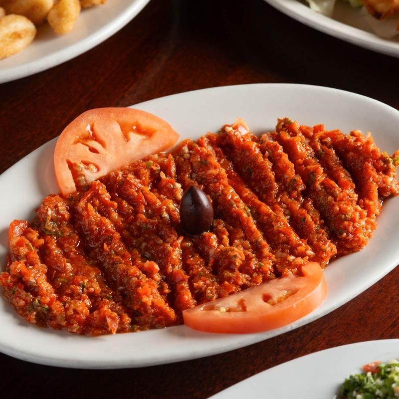Cracked wheat stuffed with ground meat and onions. Served with tomato and garlic yogurt sauce.