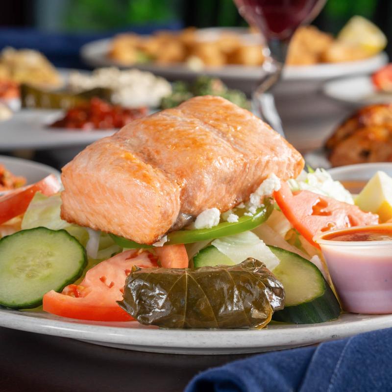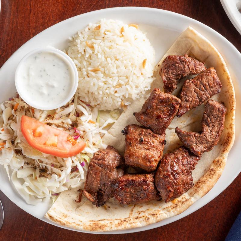 Gyro $17.00 || Chicken Shish Kebab $17.00 || Lamb Shish Kebab $19.00 || Beef Shish Kebab $18.00 || Baked Salmon $18.00 || Shrimp Kebab $17.00 || Falafel $17.00